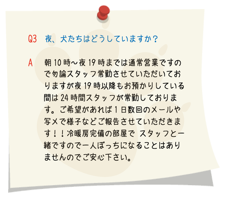 散歩やフード、パートナーの写メや動画などでオーナー様にご報告させていただくなど